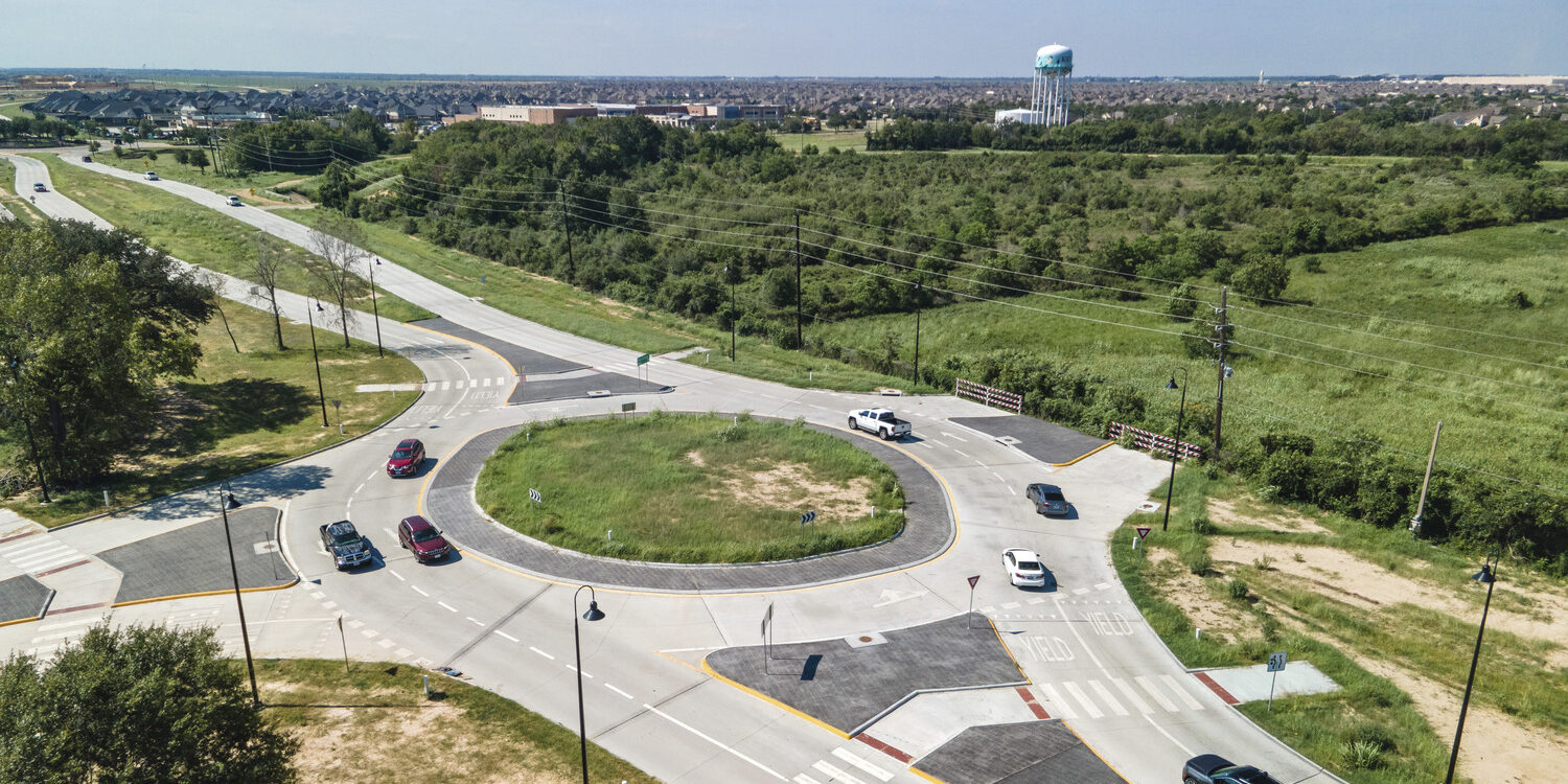 Texas Heritage Parkway is a 6.3-mile, four-lane boulevard located in Fort Bend County and Waller County, Texas. It serves as a north/south thoroughfare connecting FM 1093 (near the City of Fulshear) to IH 10 (near the City of Katy). To allow for the continuous flow of traffic, BGE designed the parkway so that it only uses roundabouts (instead of traffic signals) at 9 intersections. Roundabouts not only allow for the free flow of traffic, but because they control the direction of traffic, they are safer than traditional signalized intersections as drivers must slow down to enter the roundabout. By controlling the speed and the direction of traffic, roundabouts essentially eliminate T-bone and head-on collisions. Roundabouts also save money by eliminating electricity and maintenance costs associated with traffic signals. Texas Heritage Parkway also features 10-foot-wide walking/biking trails that cross underneath the roundabout intersections through illuminated tunnels. Spacious grassy medians enhance the pedestrian-friendly nature of the project. BGE has been involved with the planning of this roadway since 2008. Funding is from private developers and Fort Bend County, and other participants include Waller County, the City of Fulshear and the City of Katy.